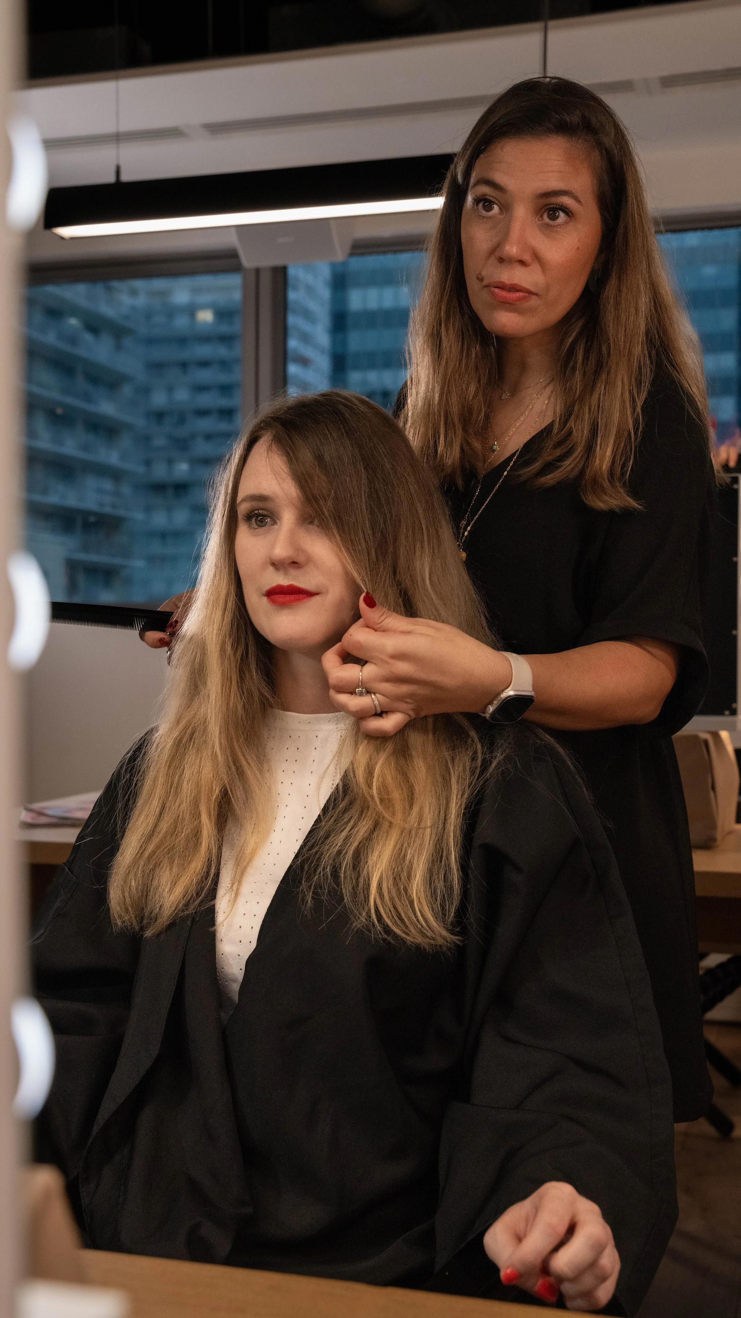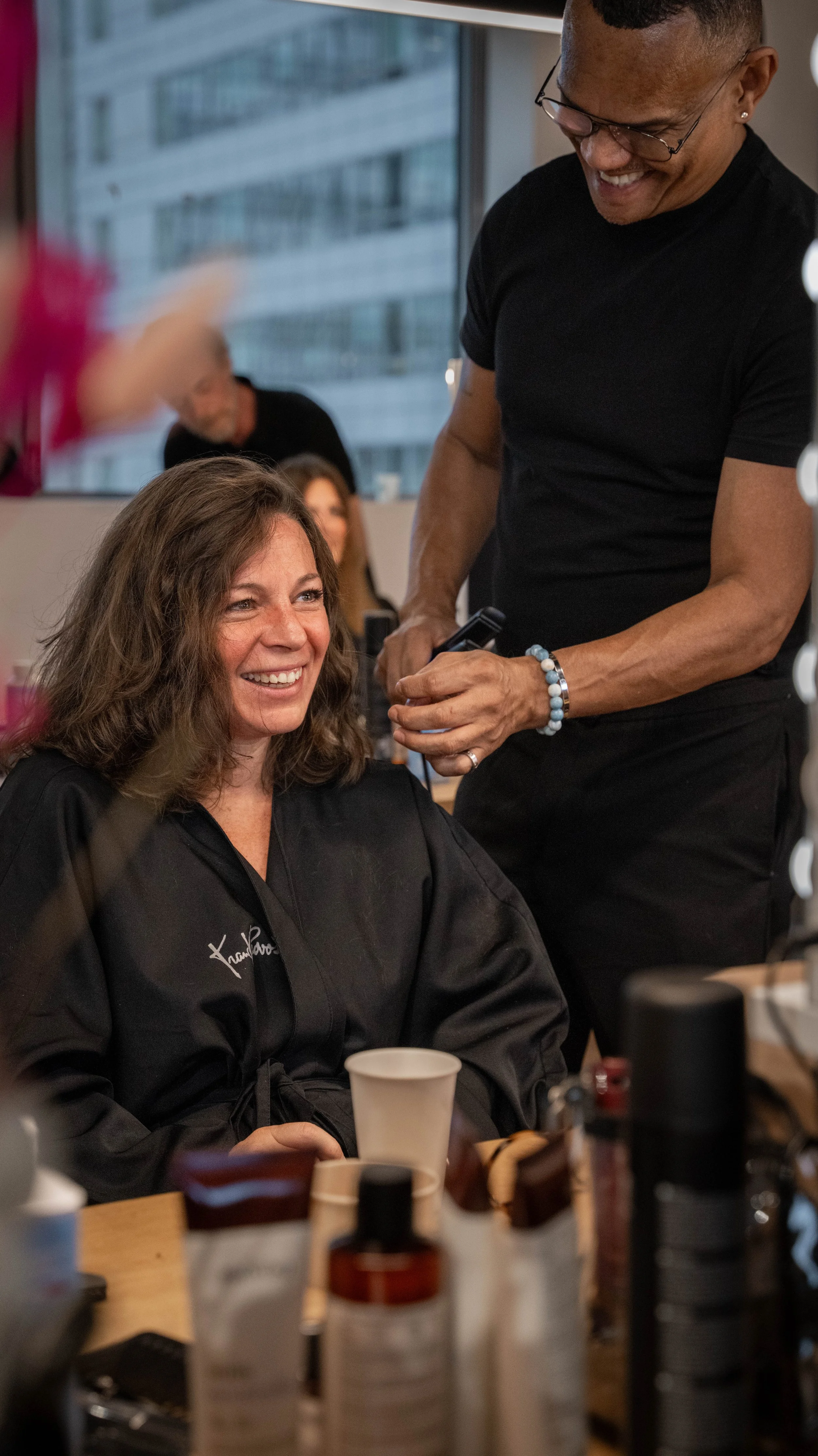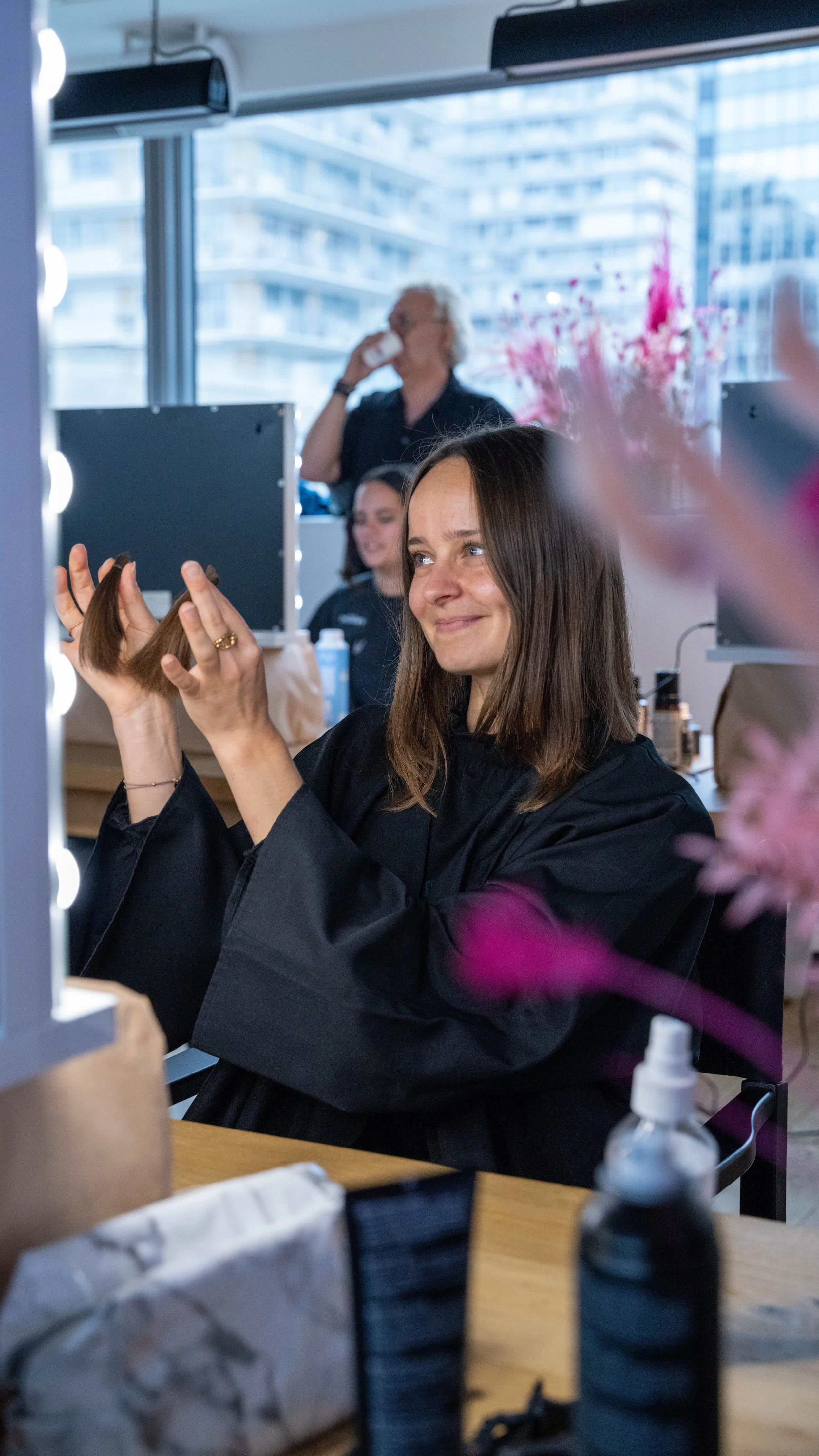 The most challenging constraint was the lack of light. The weather wasn’t on our team during the whole week and we didn’t have many options to create a proper set up since we had to blend in, in order to not disturb the hair stylists and the donators.